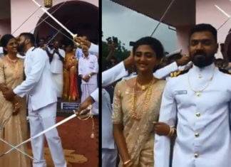 भारतीय नौसेना (Indian Navy) में तैनात अधिकारी केरल निवासी लेफ्टिनेंट अभिनव को उनकी शादी के मौके पर साथियों और कोर्समेट की तरफ से दिए गये आदेशों को अमल करते हुए फ़ौजी रस्मों के बीच...