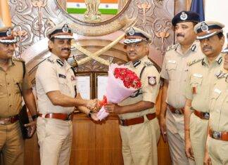 अपनी टीम के साथ डीजीपी से मिलने पहुंचे चेन्नई के पुलिस कमिश्नर ए अरुण