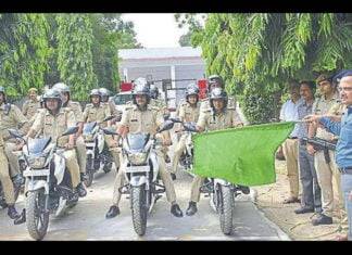 उत्तर प्रदेश पुलिस का गाजियाबाद में तेजस मोटर साइकिलों का दल