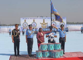 President Draupadi Murmu presented Presidential Standard and Colors to units of Indian Air...