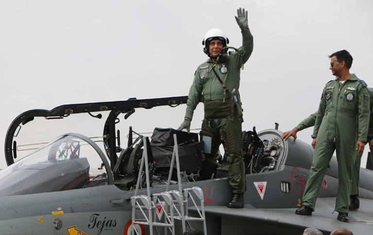 Rajnath Singh has become first Defence Minister to fly the Light Combat Aircraft (LCA) ‘Tejas’. Defence Minister Singh undertook 30-minute sortie in the indigenously-built multi-role fighter aircraft with Air Vice Marshal Narmdeshwar Tiwari, at the Hindustan Aeronautics Limited (HAL) Airport in Bengaluru on Thursday morning. He later described it as’thrilling and special’.