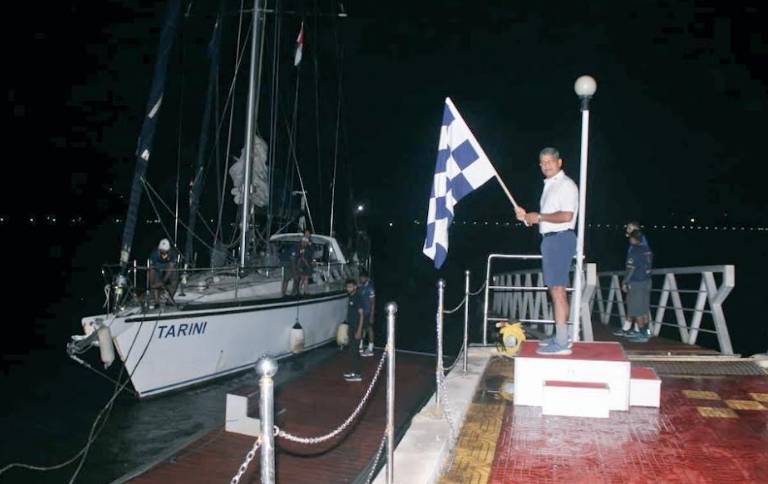 Indian Naval Sailing Vessel Tarini has started for a sailing expedition from Goa to Port Louis, Mauritius early hours today. Cmde Sanjay Panda, Commanding Officer of INS Mandovi , flagged off the sailing expedition. The expedition is being undertaken by a crew of six (incl three women officers), onboard.
