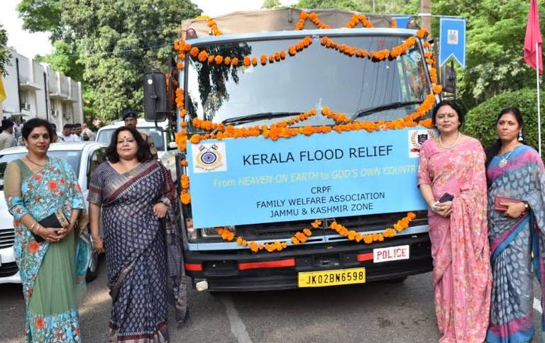 Even as para-military forces are busy rescuing stranded people in Kerala floods, India’s largest paramilitary’s welfare association has begun mobilising funds and relief material for Kerala flood victims. Families of CRPF personnel located all over the country , have begun collecting food items, clothes and medicins to help thousands of flood victims who have lost almost everything in the devastating floods. The Jammu and Kashmir unit of the CRPF family welfare association has collected nearly 20 tonnes of flood relief material and and flagged off on Friday. This material would be sent to Kerala through plane and train.