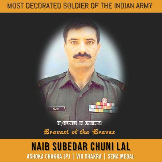 ਭਾਰਤੀ ਫੌਜ ਦੇ ਇਤਿਹਾਸ ਵਿੱਚ ਨਾਇਬ ਸੂਬੇਦਾਰ ਚੂਨੀ ਲਾਲ ਦਾ ਨਾਮ ਹਮੇਸ਼ਾ ਹੀ ਦੁਰਲੱਭ ਬਹਾਦੁਰਾਂ ਦੀ ਸੂਚੀ ਵਿੱਚ ਰਹੇਗਾ। ਚੁੰਨੀ ਲਾਲ ਭਾਰਤੀ ਫੌਜ ਦੇ ਸਭ ਤੋਂ ਵੱਧ ਪੁਰਸਕਾਰ ਪ੍ਰਾਪਤ ਸਿਪਾਹੀ ਰਹੇ ਹਨ। ਜੰਮੂ-ਕਸ਼ਮੀਰ ਦੇ ਡੋਡਾ ਦਾ ਰਹਿਣ ਵਾਲਾ ਚੂਨੀ ਲਾਲ ਅਜਿਹਾ ਸੀ ਕਿ ਸੀਨੀਅਰ ਅਧਿਕਾਰੀ ਵੀ ਉਸ ਦੀ ਬਹਾਦੁਰੀ ਨੂੰ ਸਲਾਮ ਕਰਦੇ ਹਨ। 24 ਜੂਨ ਨੂੰ ਵੀ ਨਾਇਬ ਸੂਬੇਦਾਰ ਚੂਨੀ ਲਾਲ ਨੂੰ ਸ਼ਰਧਾਂਜਲੀ ਭੇਟ ਕੀਤੀ ਗਈ। 16 ਸਾਲ ਪਹਿਲਾਂ ਇਸ ਤਰੀਕ ਨੂੰ ਫੌਜ ਨੇ ਆਪਣੇ ਬਹਾਦੁਰ ਨਾਇਬ ਸੂਬੇਦਾਰ ਚੁੰਨੀ ਲਾਲ ਨੂੰ ਗੁਆ ਦਿੱਤਾ ਸੀ।